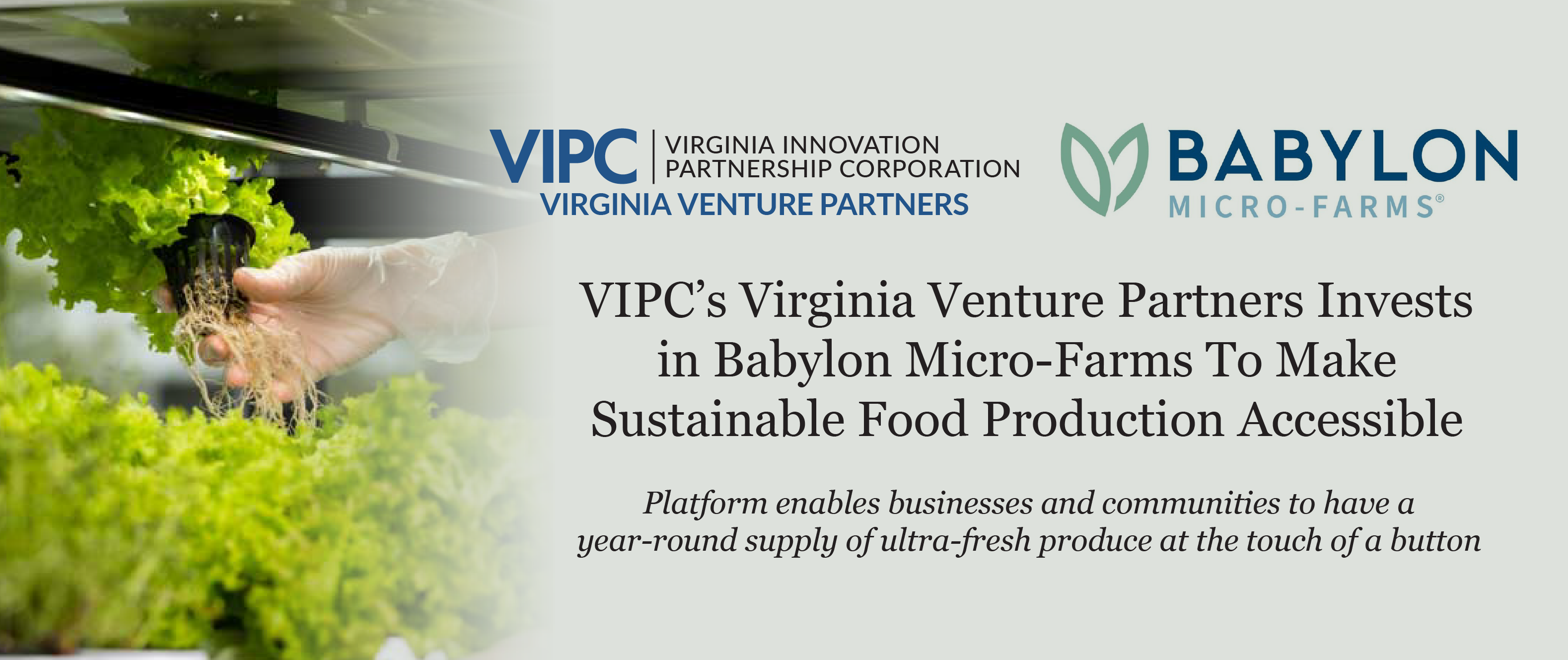 VIPC’s Virginia Venture Partners Invests in Babylon Micro-Farms To Make Sustainable Food Production Accessible