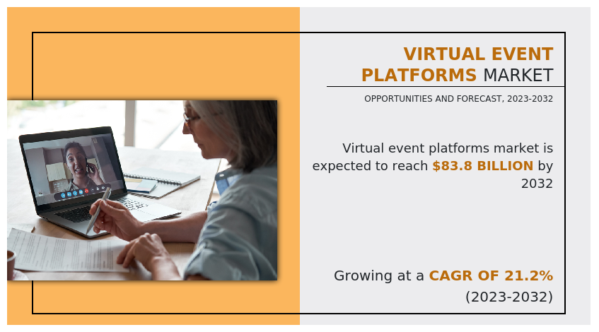 WILMINGTON, NEW CASTLE, DE, UNITED STATES, January 7, 2025 /EINPresswire.com/ — The global ๐๐ข๐ซ๐ญ๐ฎ๐๐ฅ ๐๐ฏ๐๐ง๐ญ ๐๐ฅ๐๐ญ๐๐จ๐ซ๐ฆ๐ฌ ๐๐๐ซ๐ค๐๐ญ was valued at $12.6 billion in 2022, and is projected to reach $83.8 billion by 2032, growing at a CAGR of 21.2% from 2023 to 2032. Surge in growing acceptance of online streaming drive the market growth. In addition, increasing significance of event management drives the growth of the market. However, insufficient technological expertise to integrate virtual event software and lack of infrastructure for communication and inconsistent networks are primarily expected to hamper the growth of the market. Furthermore, increasing reliance on CYOD and BYOD solutions is expected to create lucrative growth opportunities for the market.