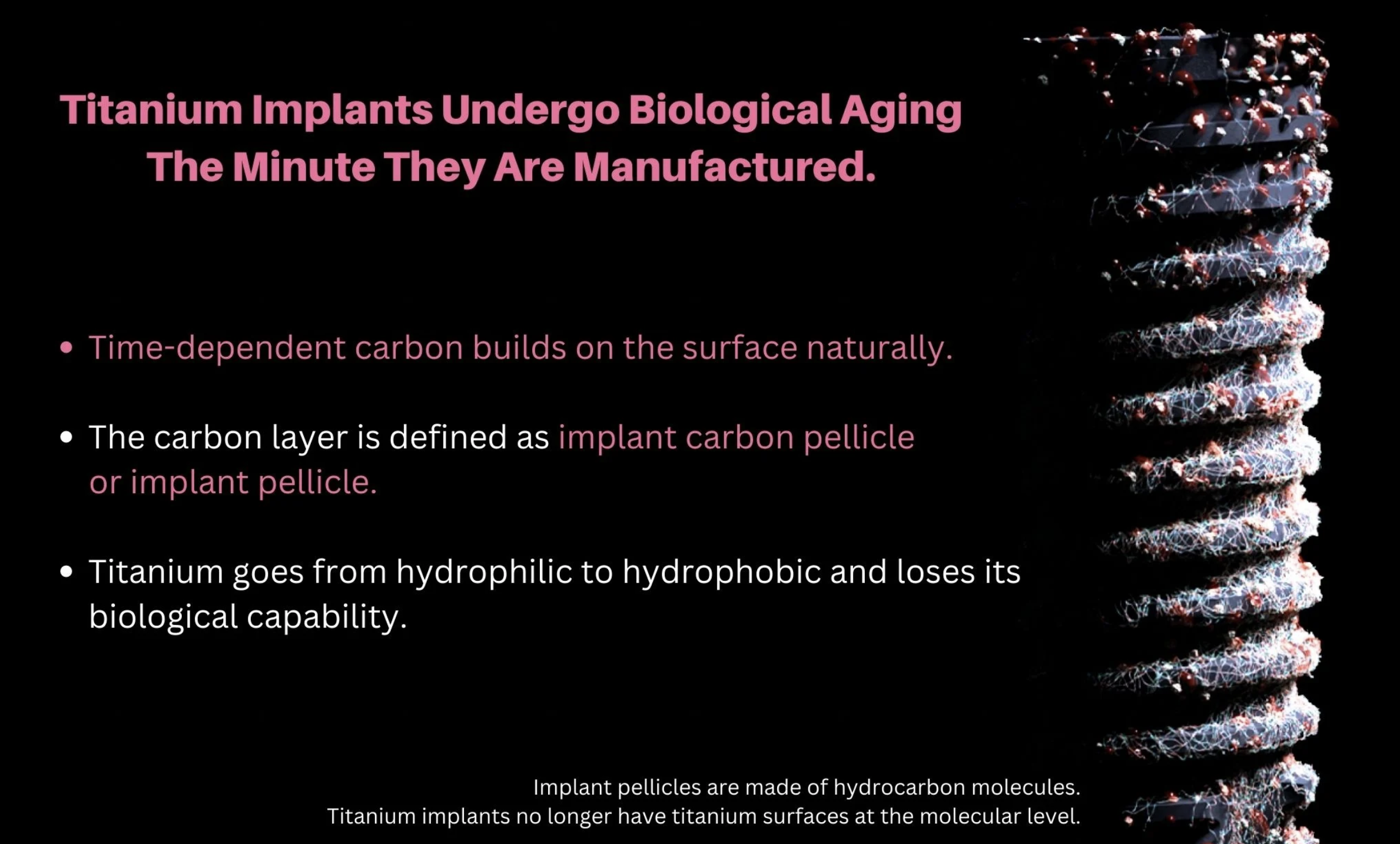 “When it comes to dental implants, there’s no way to prevent biological aging,” said Dr. Takahiro Ogawa, Professor in the Division of Regenerative and Reconstructive Sciences and Weintraub Center for Reconstructive Biotechnology at UCLA School of Dentistry. “Over time, surfaces become carbonized and covered with a pellicle, like teeth. Just like dental pellicle prevents tooth re-mineralization and provides the foundation for oral bacterial biofilm, the implant pellicle significantly compromises osseointegration and increases the attraction of oral bacteria.” Ogawa continued.