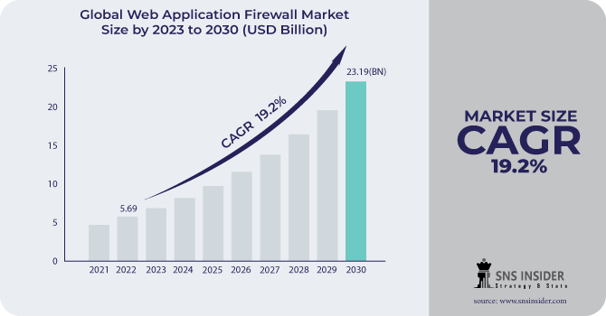 The SNS Insider report reveals that the Web Application Firewall Market Size stood at USD 5.69 Billion in 2022, poised to reach USD 23.19 Billion by 2030, exhibiting a commendable CAGR of 19.2% during the forecast period from 2023 to 2030.