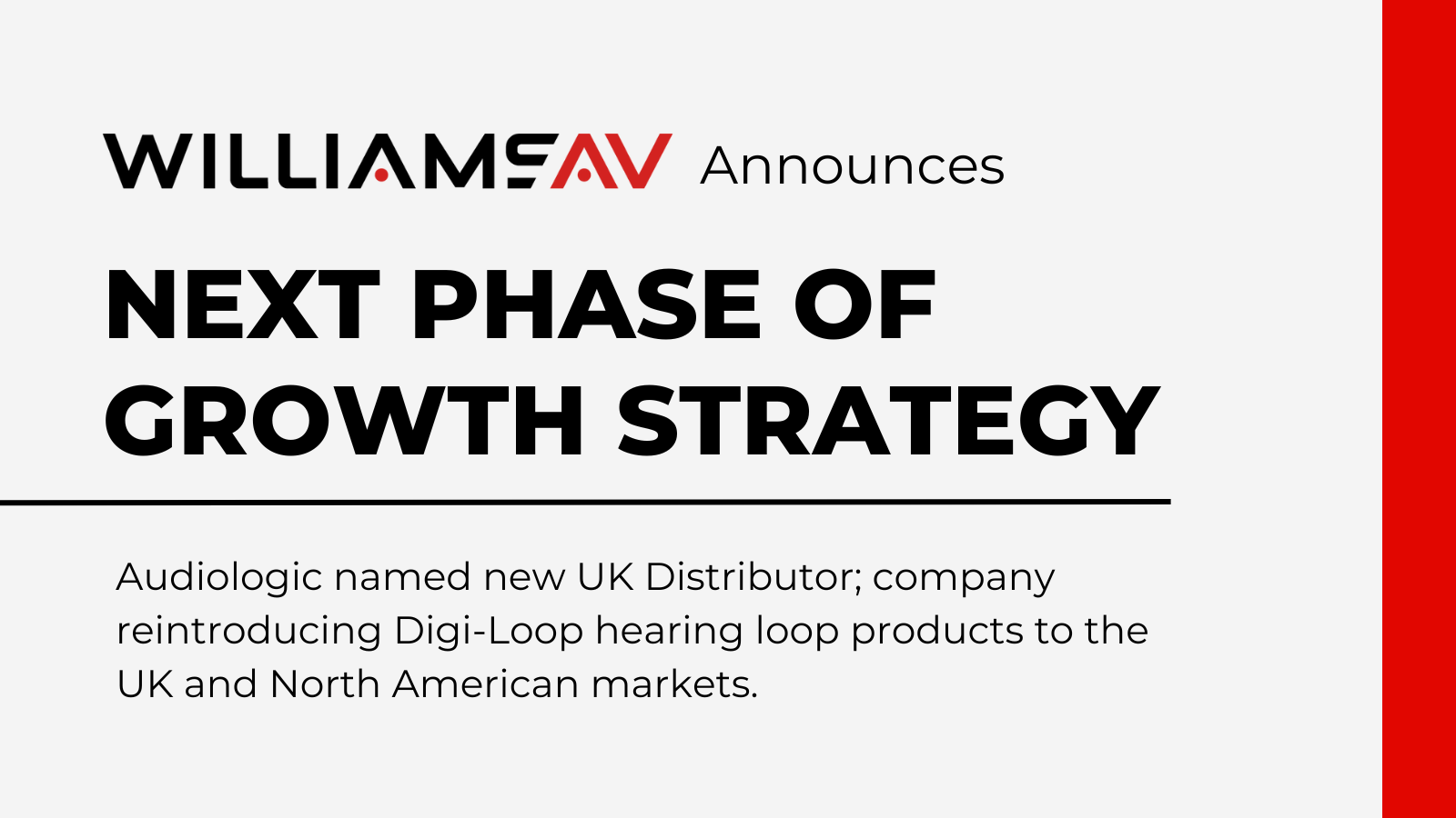 EDEN PRARIE, MN, UNITED STATES, October 31, 2023 /EINPresswire.com/ — Williams AV, the leading provider of assistive communication technology for the professional AV industry, is delighted to announce that UK-based Audiologic Ltd. has officially inked a distribution partnership covering the UK and Ireland beginning January 1, 2024, and the company’s Digi-Loop hearing loop portfolio to will now be available to the UK and North American markets.