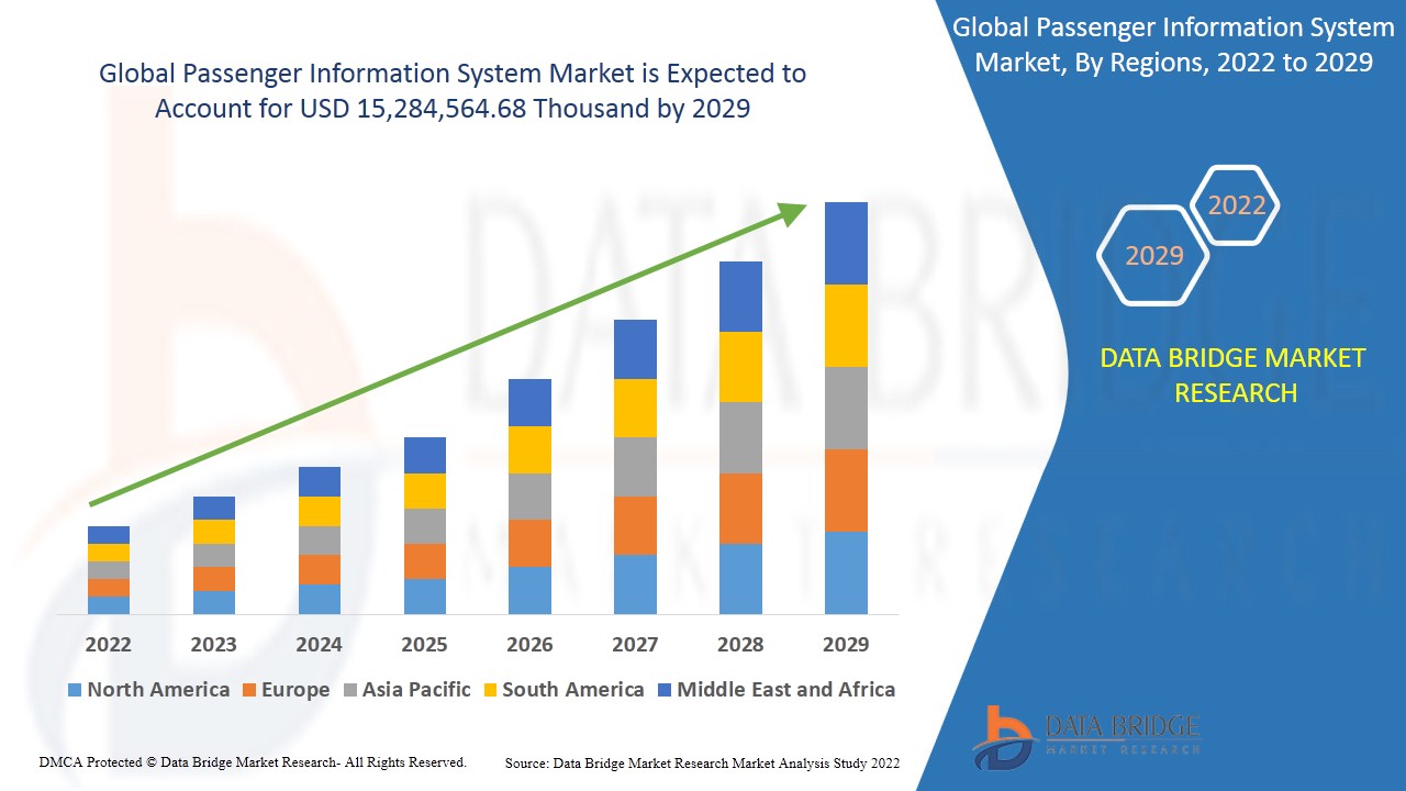Data Bridge Market Research analyses that the Global Passenger Information System Market is growing with a CAGR of 8.7% in the forecast period of 2022 to 2029 and is expected to reach USD 15,284,564.68 thousand by 2029. Rising demand for intelligent public transportation system is boosting the market.