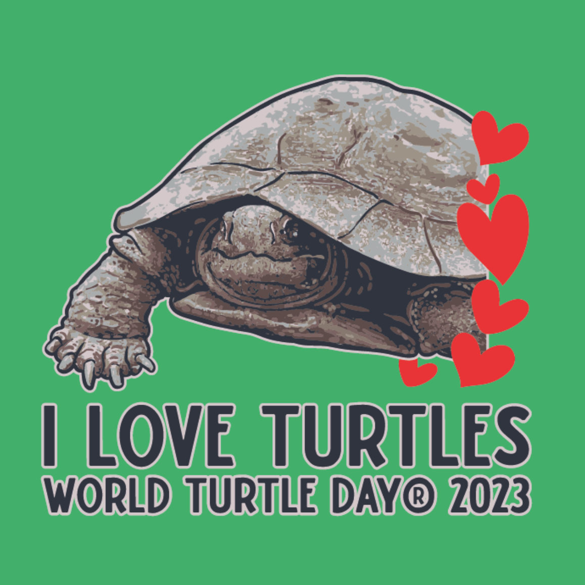 Authentic World Turtle Day I Love Turtles shirts and other merchandise is available for sale only through American Tortoise Rescue. Click to order from the Bonfire store where donations can also be made to the sanctuary.