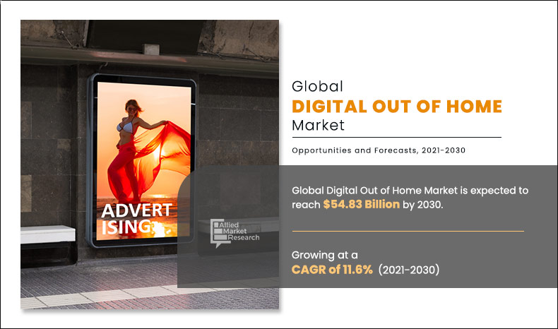 PORTLAND, OR, UNITED STATES, March 8, 2022 /EINPresswire.com/ — According to a new report published by Allied Market Research, titled, “Digital Out of Home Market By Format Type (Billboard, Transit, Street Furniture, and Others), Application (Indoor and Outdoor), and End User (Automotive, Personal Care & Households, Entertainment, Retail, Food & Beverages, Telecom, BFSI, and Others): Global Opportunity Analysis and Industry Forecast, 2021–2030,” the digital out of home market size was valued at $18.8 billion in 2020, and is projected to reach at $54.83 billion by 2030, growing at a CAGR of 11.6% from 2021 to 2030.