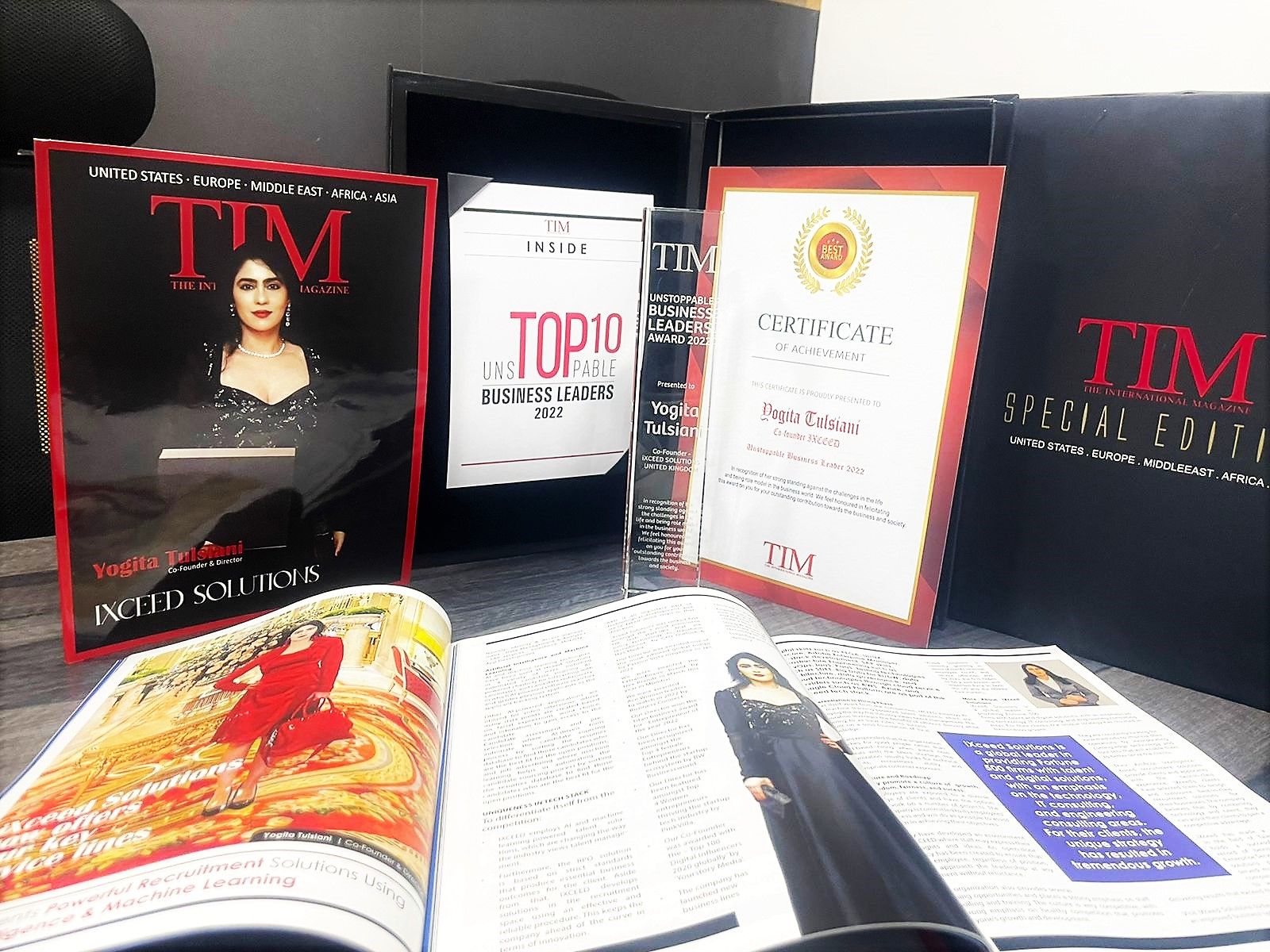 Yogita Tulsiani Triumphed Worldwide as Top 10 Unstoppable Business Leaders 2022 by The International Magazine.