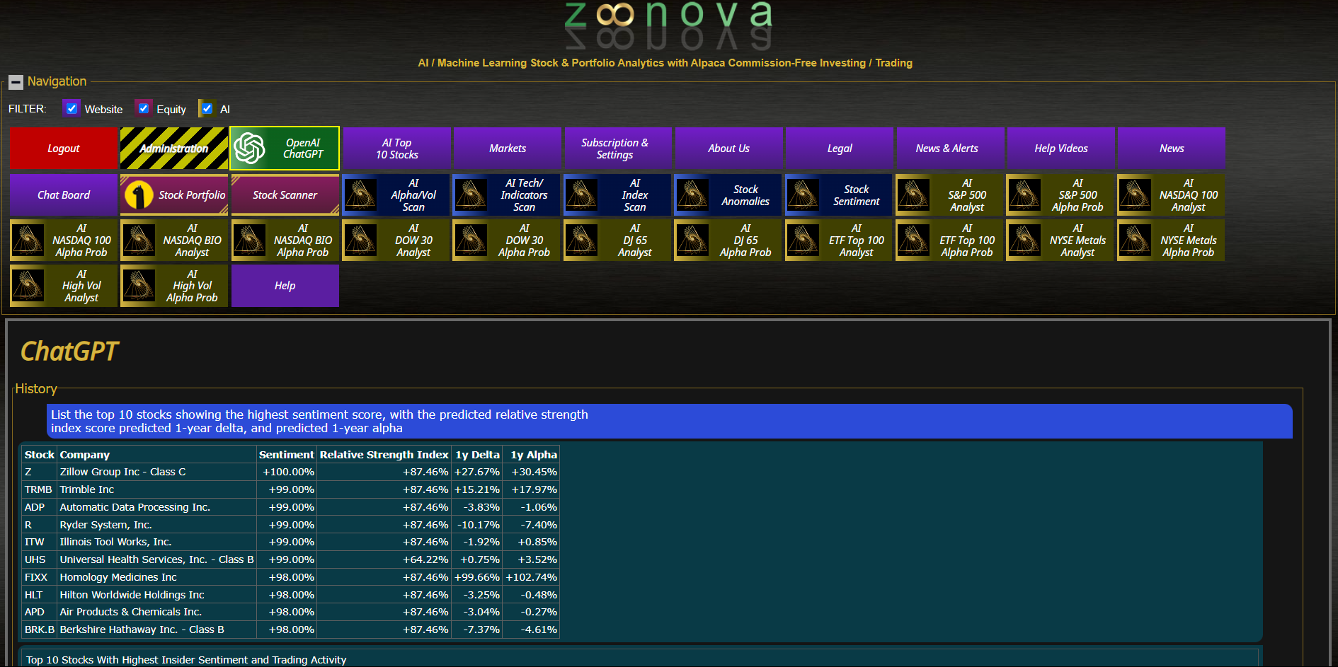 “Zoonova.com with ChatGPT-4 Launches New Advanced AI/Machine Learning Analytics for Financial Markets”